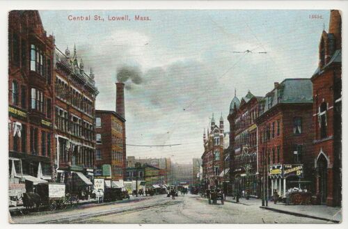 Title (ebay affiliate link): LOWELL, MA. STORES, HORSEDRAWN WAGONS, THEATRE ON CENTRAL ST. VINTAGE POSTCARD