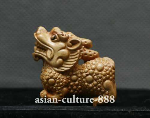 Title (ebay affiliate link): China Boxwood Wood Carved Fengshui Unicorn Beast Pixiu Pendant Key Chain Ring T1