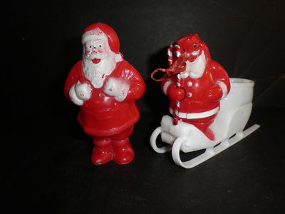 Title (ebay affiliate link): Two neat old glass Santa shaped candy containers c.1950
