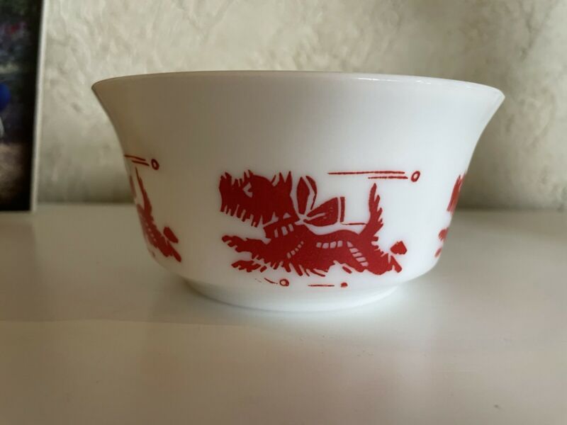 Vintage Hazel Atlas Platonite Milk Glass Red Scotties Scotty Dog Cereal Bowl