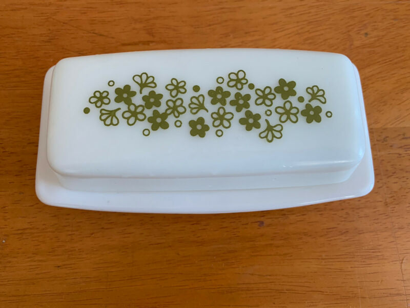Title (ebay affiliate link): Vintage Pyrex Glass Butter Dish 2pc Spring Blossom Crazy Daisy Green
