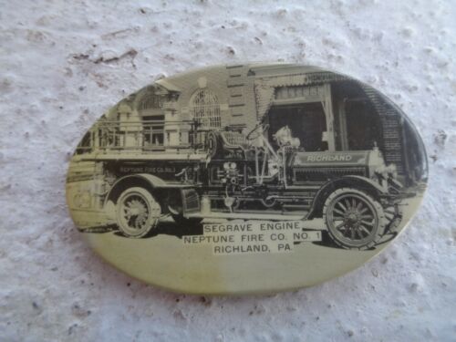 VINTAGE SEGRACE ENGINE NEPTUNE FIRE CO RICHLAND PA ADVERTISING POCKET MIRROR