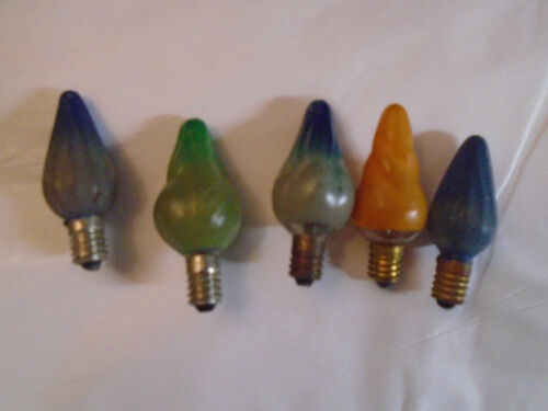 Title (ebay affiliate link): 5 UNUSUAL C-6 WORKING LIGHT BULBS (FLAME, 2 TONE & MAZDA "DETECO"?)