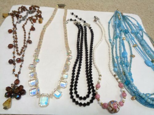 Vintage LOT of 5 VENETIAN Milk GLASS Crystal Watermelon GLASS Beaded Necklaces