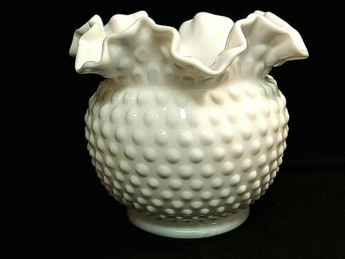 Title (ebay affiliate link): Vintage Fenton Hobnail Milk Glass 5.25" Ruffled / Crimped Edge Bowl / Vase