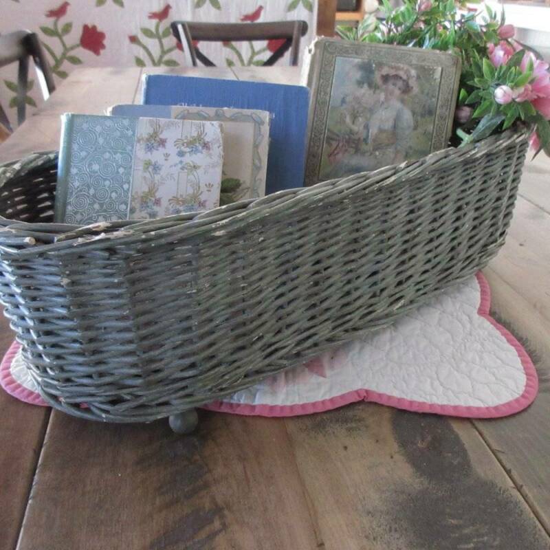 Title (ebay affiliate link): 21" Chippy Green Paint & Ball Feet Antique Basket ~ Farmhouse or Cottage