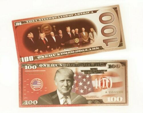 Title (ebay affiliate link): Donald Trump Authentic Republican Red & Silver Commemorative $100 Bank Note
