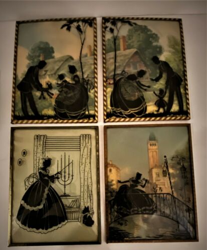 Ten Vintage Bubble Glass reverse painted Silhouettes 8" x 6"