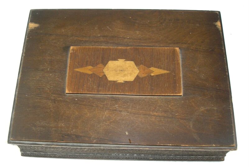 Title (ebay affiliate link): Vintage Wood Box with Inlay on Top, Solid, but needs TLC. Great box for keepsak