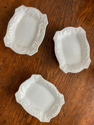 Title (ebay affiliate link): 3 BEAUTIFUL Old Vintage Embossed Rectangular WHITE IRONSTONE BUTTER PATS