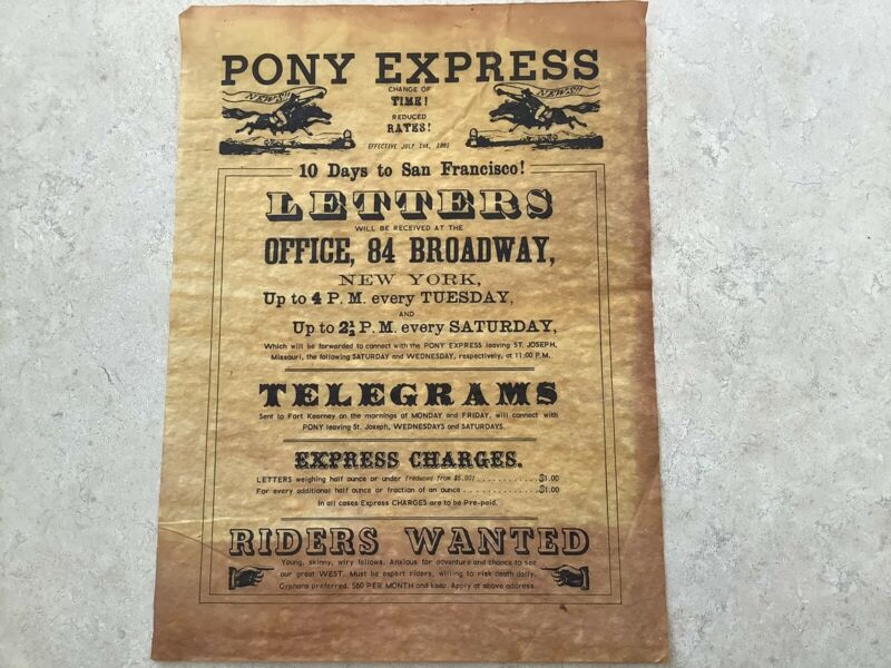 PONY EXPRESS RIDERS WANTED PARCHMENT PAPER 11" X 9"