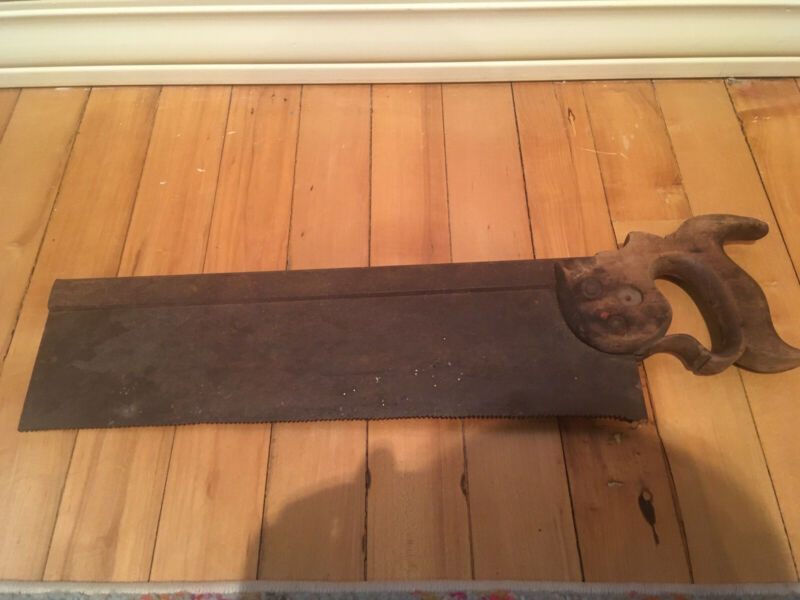 Title (ebay affiliate link): Antique Cast Steel Miter Saw Wooden Handle Authentic Vintage