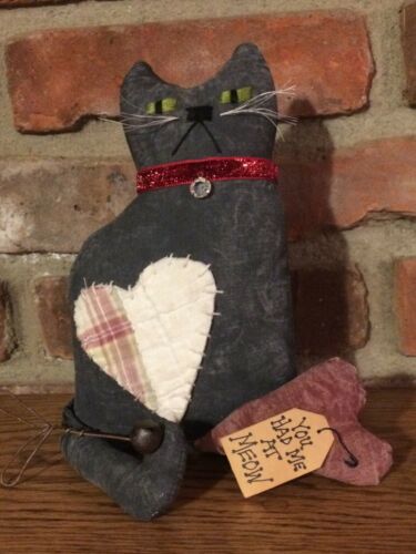 Title (ebay affiliate link): Primitive Folk Art OOAK Black Kitty Barn Cat Vintage Quilt Heart Rusty Bell Tag