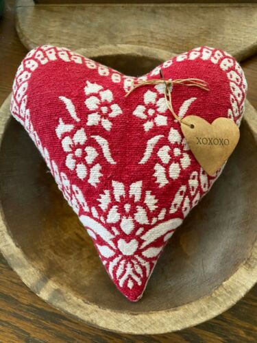 Title (ebay affiliate link): Primitive Stitchery Hand Stitched Red and White Woven Valentine Heart