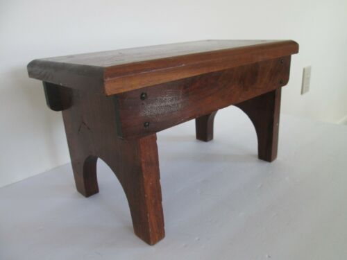 vtg Wood Foot Stool/Bench Footrest Dark hard Wood Country Primitive 14" L