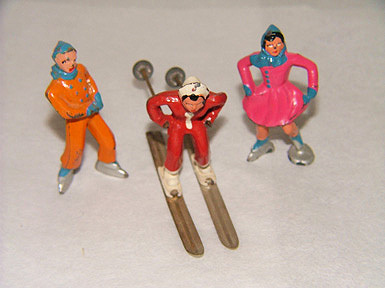 VINTAGE LOT OF 3 LEAD CHRISTMAS LAYOUT BARCLAY SKATERS