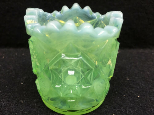 Jadeite Green Milk glass toothpick holder star cut pattern opalescent jade match