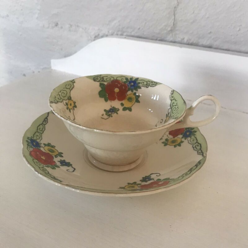Title (ebay affiliate link): Beautiful Retro Vintage Green Floral Tea Cup And Saucer Made In Japan