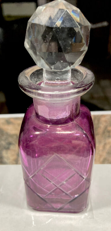 Vintage Amethyst Square Glass Bottle With Crystal Stopper