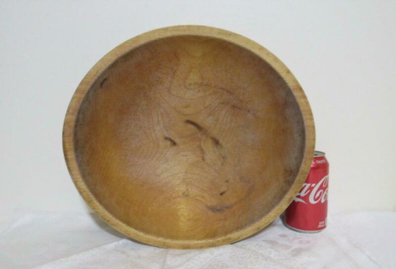 Vintage hard wood bowl primitive mixing dough LARGE 13 3/8" Hand Turned antique