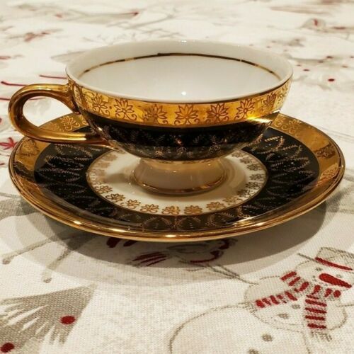 Title (ebay affiliate link): Royal Crown Hand Painted Black White Gold Espresso Demi Coffee Cup Saucer 1699