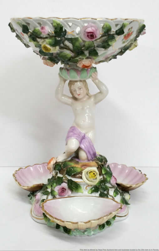 Title (ebay affiliate link): Onate Early 20c Meissen Type Continental Porcelain Cherub Shell Centerpiece