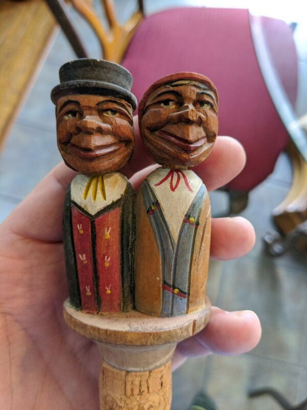 Title (ebay affiliate link): Vintage Antique Black Americana Carved Wine Cork Bottle Topper Mechanical