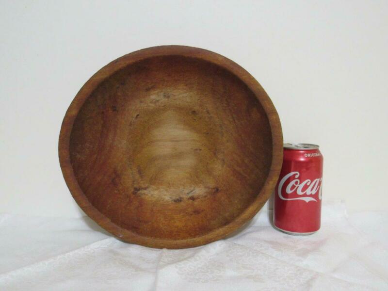 Vintage hard wood bowl primitive mixing dough 11 1/4" Hand Turned worn antique
