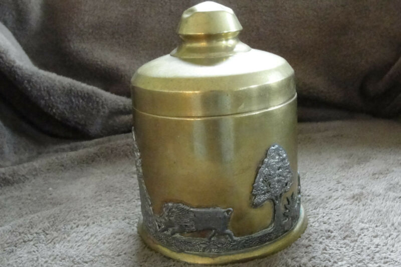 Arts & Crafts Era Pictorial Pewter on Brass Humidor