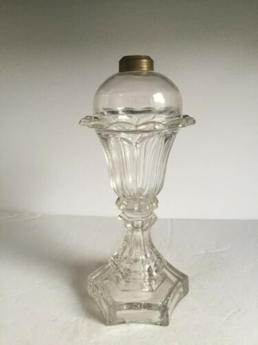 Antique Boston and Sandwich Glass Pressed TULIP Oil Lamp Hexagonal Base ORIGINAL
