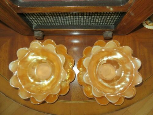 2 Sets 1950''s Vintage Fire King Peach Luster Lotus Leaf Blossom Bowls & Plates
