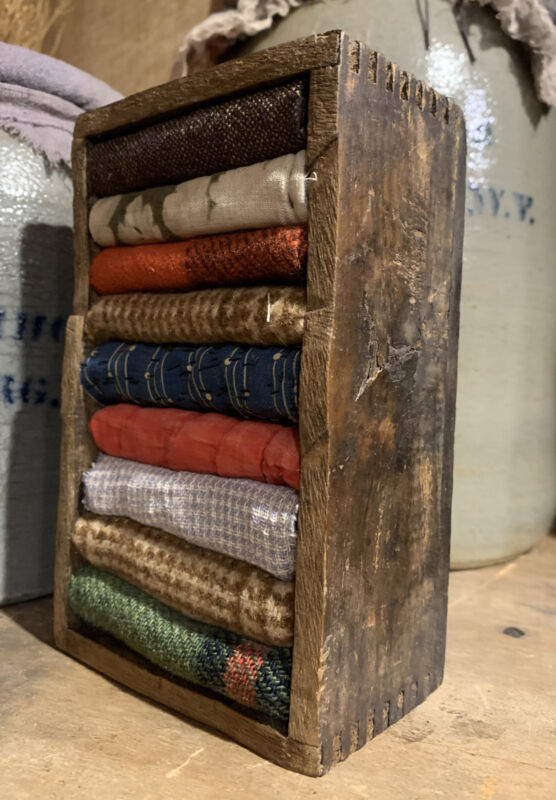 Title (ebay affiliate link): Early Dovetail Box W/ Scrapes Of early Lindsey Woolsey Old Wools & Homespun