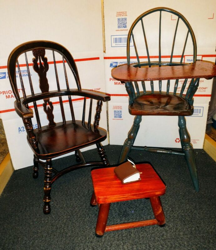Vintage Wooden Baby Doll High Chair Hinged Tray that lifts 17 +Chair+Table+Books