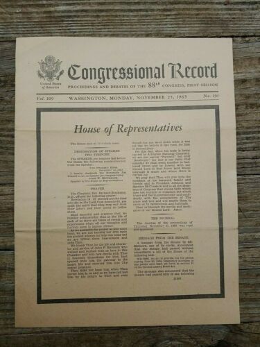 Title (ebay affiliate link): Congressional Record Nov 25 1963 JFK Assassination, McCarthy Vol 109 #191