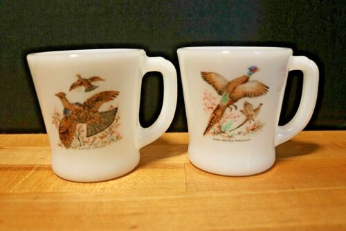 Title (ebay affiliate link): Set of 2 Fire King Milk Glass Mugs - Ruffed Grouse and Ring Necked Pheasant