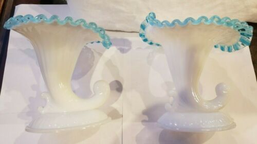 Title (ebay affiliate link): FENTON AQUA CREST 2 JACK IN THE PULPIT 6.5" CORNUCOPIA CANDLE HOLDERS