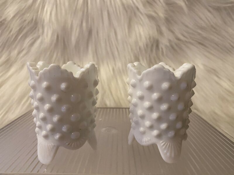 Fenton White Milk Glass Hobnail Egg Vase. Set Of 2. 3 in tall