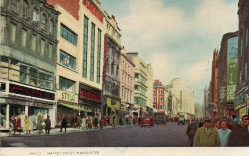 Title (ebay affiliate link): POSTCARD SHOPS AND OLD CARS ON MARKET STREET MANCHESTER POSTED 1965