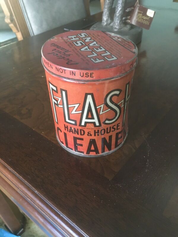 Title (ebay affiliate link): Vintage Flash Hand & House Cleaner Tin Can With Original Contents Inside.