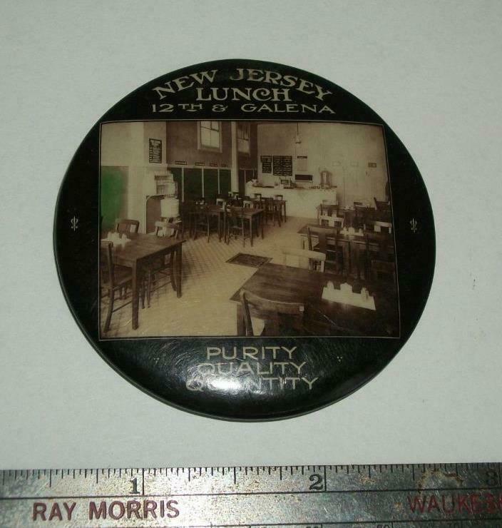 EARLY 1900S ADVERTISING CELLULOID POCKET MIRROR NEW JERSEY LUNCH 12TH AND GALENA