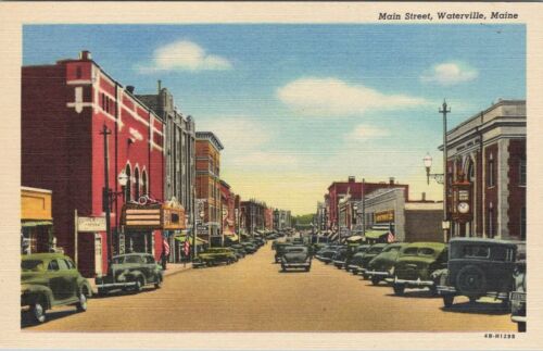 Title (ebay affiliate link): Linen postcard, old cars looking down Main Street, Waterville, Maine