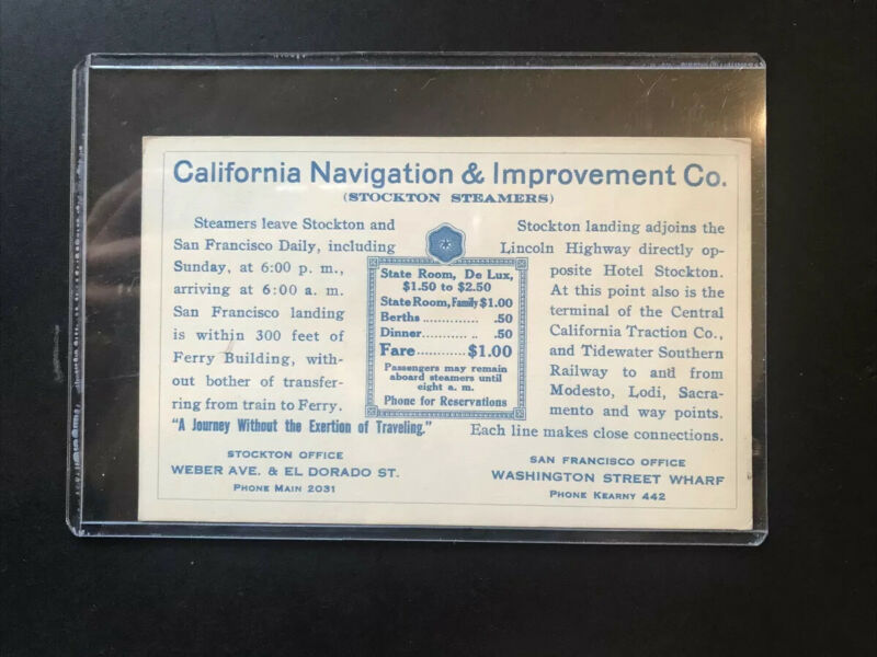 Title (ebay affiliate link): California Navigation & Improvement Co. Stockton Steamers Vintage Postcard