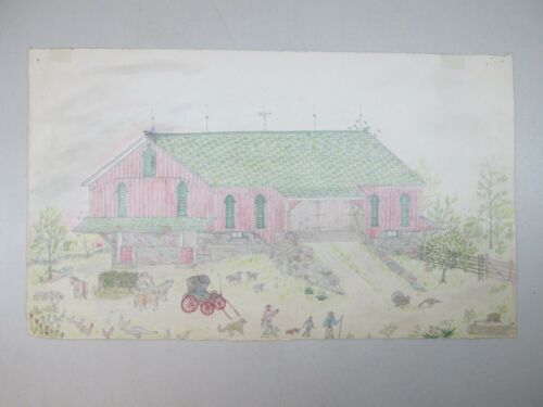 Title (ebay affiliate link): WONDERFUL EARLY AMERICANA PENCIL SKETCH OR DRAWING OF A BARN AND BARNYARD