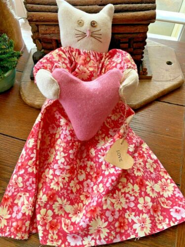 Title (ebay affiliate link): Primitive Kitty Cat Doll Valentine Girl Ava Flowered Dress Love