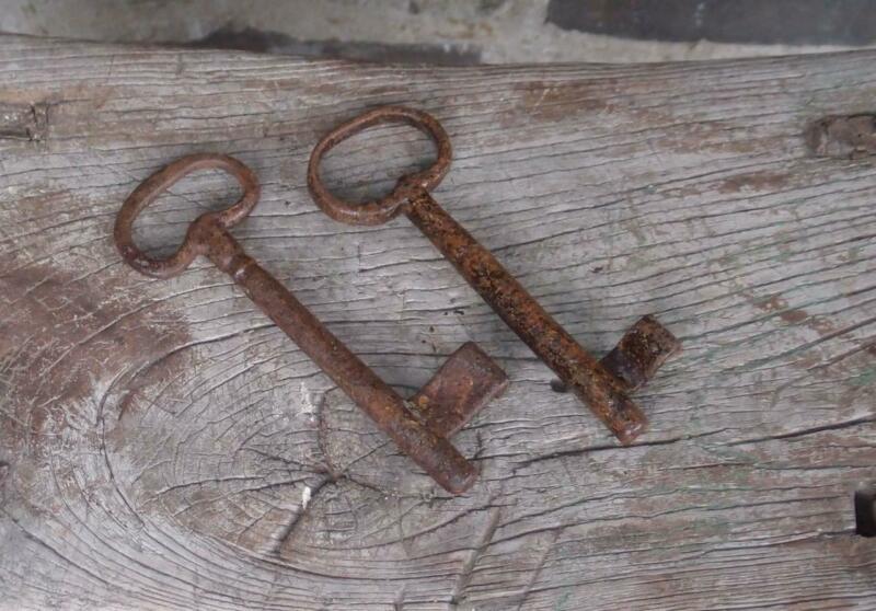 Title (ebay affiliate link): Two LARGE Antique Early 18th Century Blacksmith Made Forged Iron Skeleton Keys