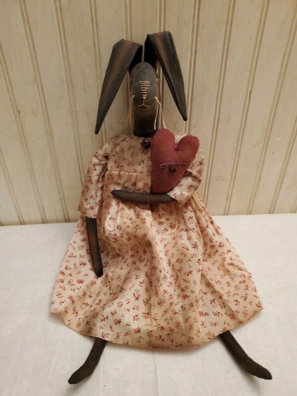 Title (ebay affiliate link): Primitive Grungy Black Bunny Rabbit Doll & Her Valentine Heart