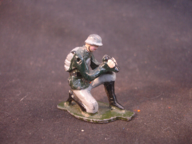 RARE Lead Military Soldier Kneeling Binoculars Backpack Move-able Toy Helmet