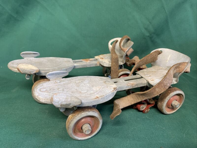 Title (ebay affiliate link): Vintage Pair of Hustler Speed King Metal Roller Skates with Leather Straps