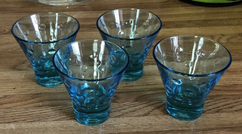 1960s 4 Hazel Atlas Electric Blue Capri Skol Sham Bottom Tumblers