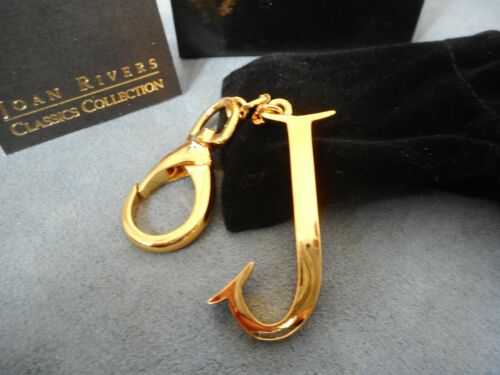 VTG JOAN RIVERS Classics Collection Gold Tone Letter Key Chain "J" NOS Box w/bag